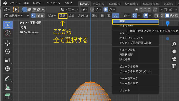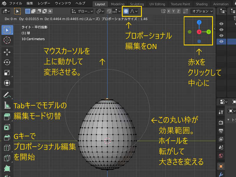 板を選択した状態で、Tabキーを押して、編集モードにするよ。
