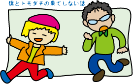 リュウセイさんのWebコミック「僕とトモダチの果てしない話」のイラストです。
