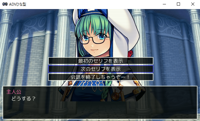メッセージ表示同様、メニューに配置するのが楽ちんなんですが